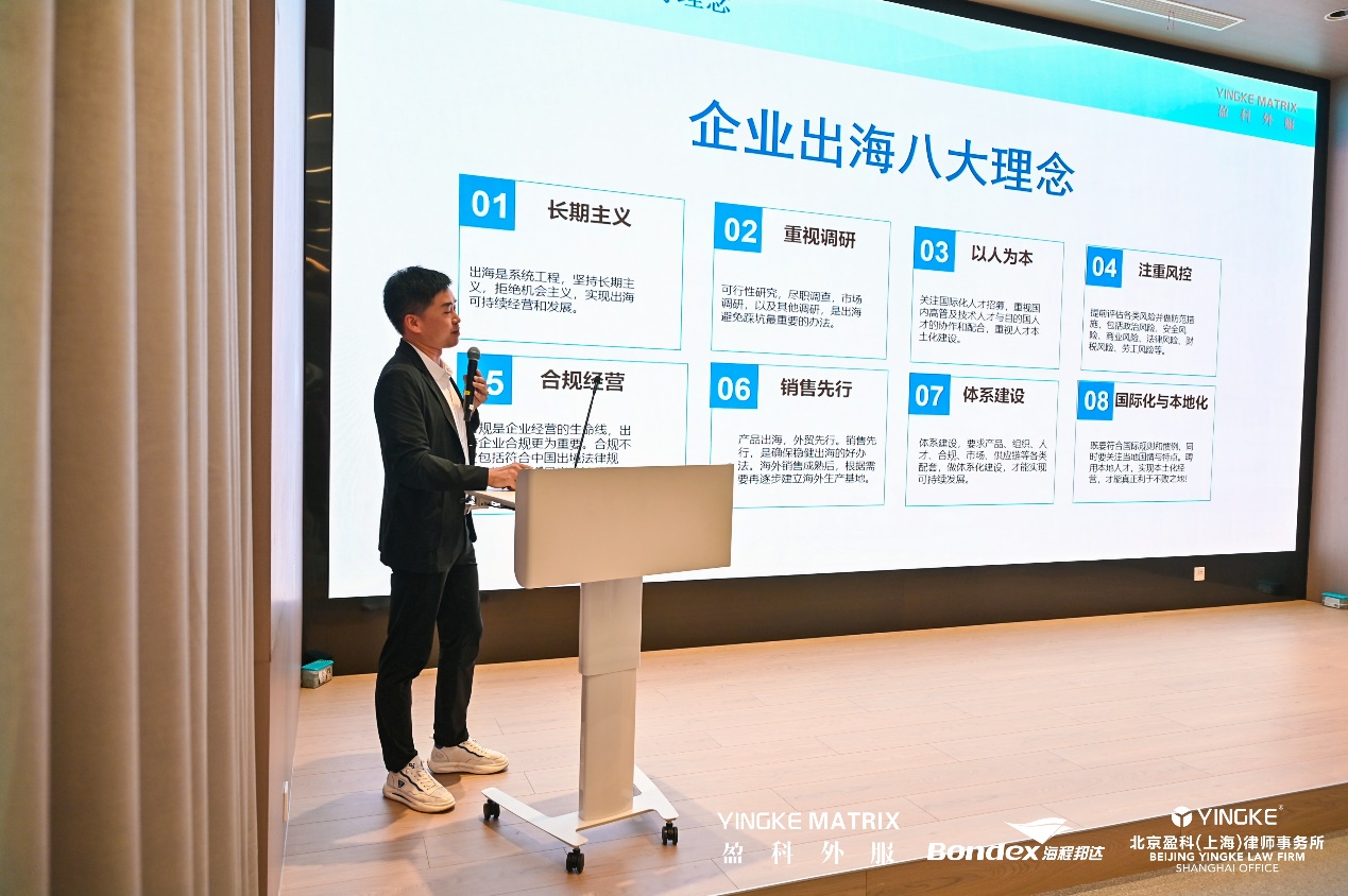 紧接着,盈科外服集团总裁叶小培分享企业出海“五步走”以及盈科外服“一站式”出海服务体系方法论,国际海关规则专家带来了《世界海关规则解析及企业出海海关合规思考》的精彩演讲,深入剖析世界海关规则的最新动态及企业合规出海的关键路径,为企业规避国际贸易风险提供了指导。